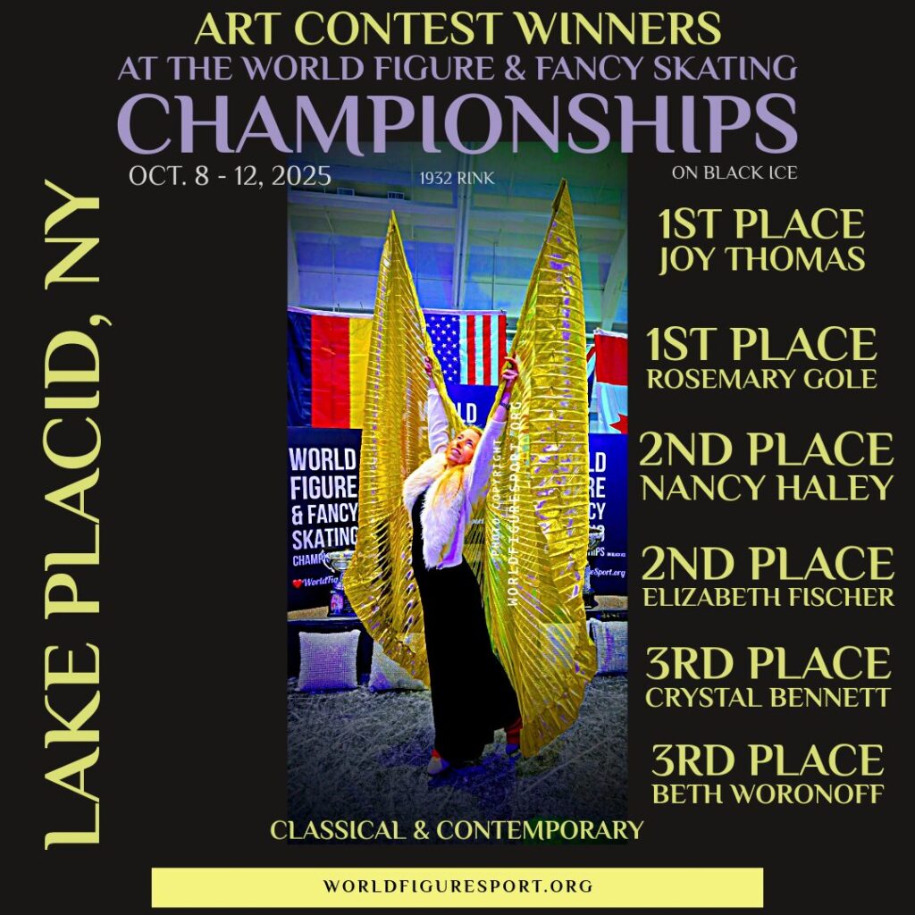 World Figure Sport will host an art gallery contest at the World Figure & Fancy Skating Championships on black ice from October 8-12, 2025. Please see the below details to enter.
